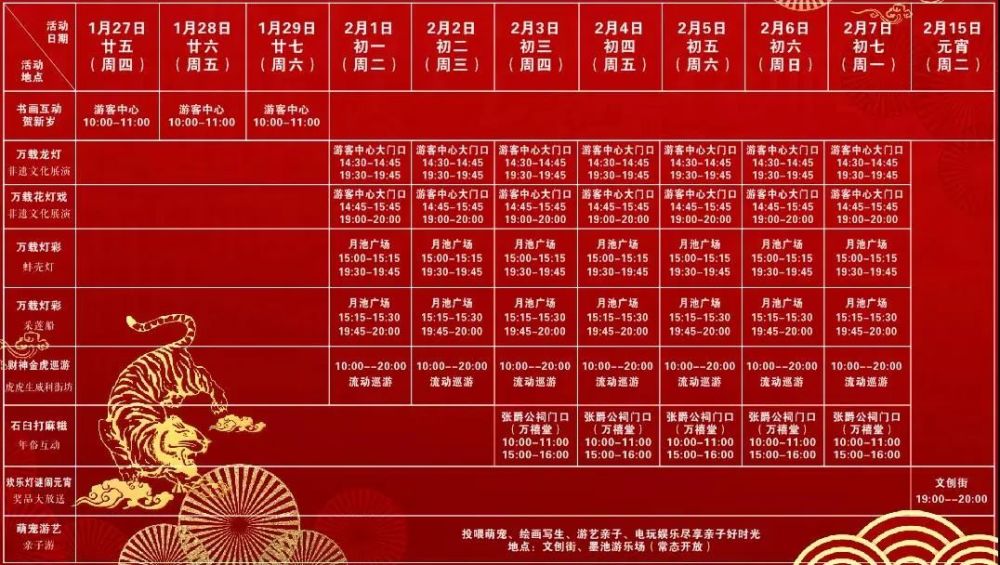 活动时间:1月31日——2月6日(除夕——正月初六)