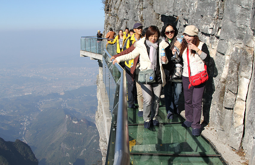 天门山玻璃栈道,下面是悬空的,不知道你敢不敢走,哈哈