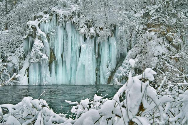清晨,驱车约3小时,前往壮观的喀斯特天堂——普利特维采湖群国家公园(Plitvice Lakes National Park)。16个天然湖泊错落在岩壁树丛之间,平日里,钙华围出的湖群映照出绚烂的色彩;入冬后,数不清的瀑布凝结成冰,冰柱闪闪发光,步入其间,仿若置身童话世界,这是克罗地亚最大的国家公园最壮观的时刻之一。