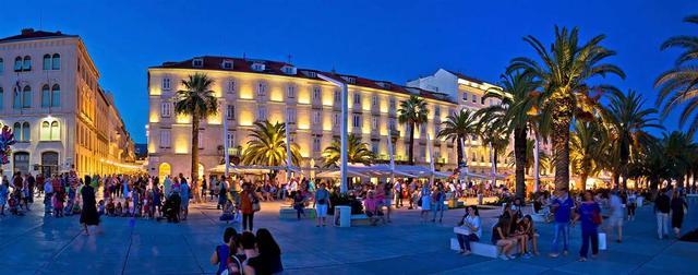 斯普利特的夜是惬意的。漫步在海滨大道,Riva整条沿海街道栽种着棕榈树,遍布撑起白色帐篷的咖啡厅露天座,也有不少供游人休憩的长椅。像当地人一样,端杯咖啡或一罐啤酒坐在海边,吹吹风,唠唠嗑,家人的相处之道其实很简单。