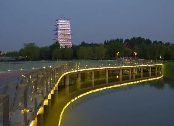 公园里,树木林立,草长莺飞,花海荡漾,6千米智能运动步道,备受夜跑爱好者们的青睐。步道完美地将林海与花海串联,全面清晰、现代时尚的步道导视系统,独特靓丽的马拉松文化展示墙,让人耳目一新。