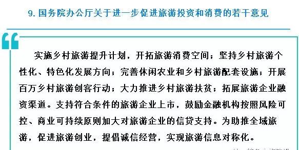 乡村旅游的开发和建设,离不开政策的支持,熟悉政策是乡村旅游开发主体的一堂必修课。以下是乡村旅游政策法规要点的最新总结,特呈现给大家,以作参考。