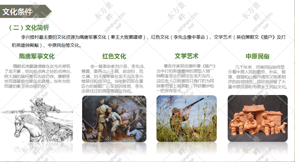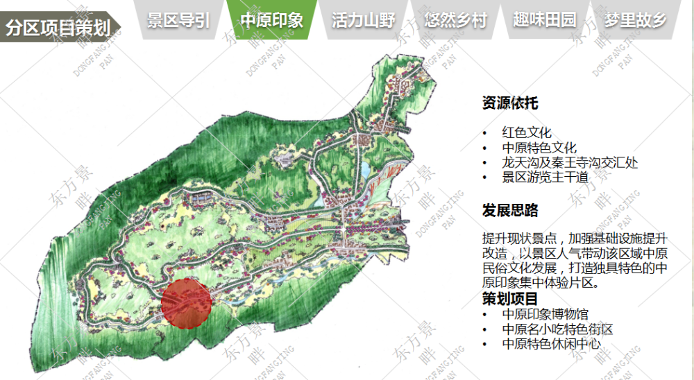 提升现状景点,加强基础设施提升改造,以景区人气带动该区域中原民俗文化发展,打造独具特色的中原印象集中体验片区。