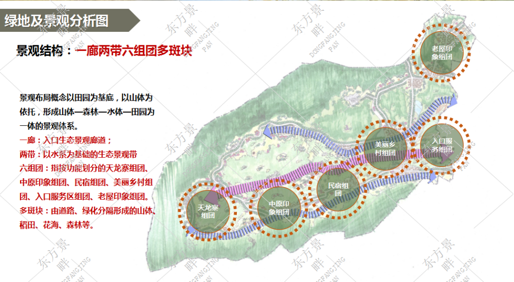 规划构建“山-镇-田园-廊道”一体化的大空间格局: