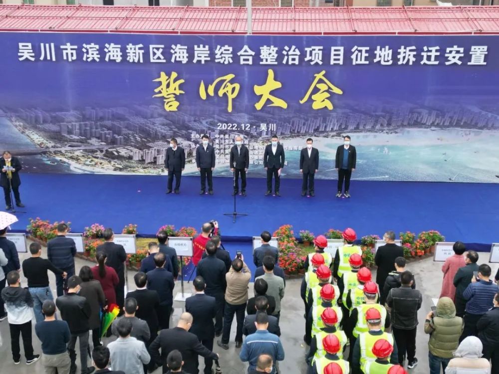 12月16日,项目征地拆迁安置誓师动员大会举行,标志着滨海新区海岸综合整治项目征地拆迁安置工作全面启动。吴川市委、市政府主要领导与海滨街道办负责人,海滨街道办与社区分别签订了滨海新区综合整治项目征地拆迁安置工作责任书。海滨街道及塘尾社区、中铁一局分别就用地项目和征拆工作作了表态发言。