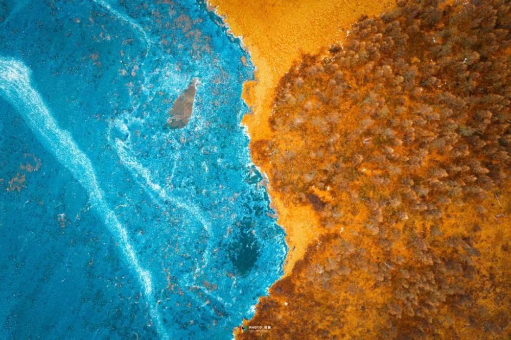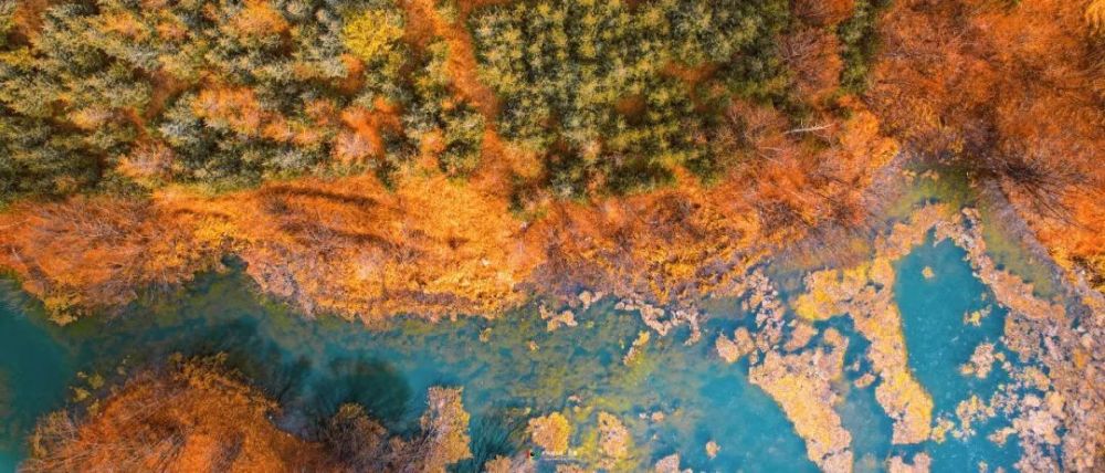 “秋天独特的色彩,用航拍镜头表现出来,产生了极致之美。几张照片对构图、色彩、光线以及后期调色的控制都不错。也很想看看正常色调,不加重饱和度的真实效果。”