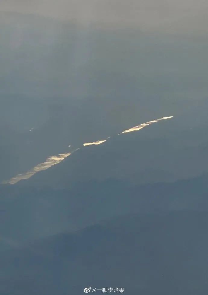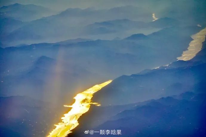 “能够在民航的飞机上看见类似的景观,是很幸运的。虽然是随手拍到的,逆光下的黄金水道还是很美的。”