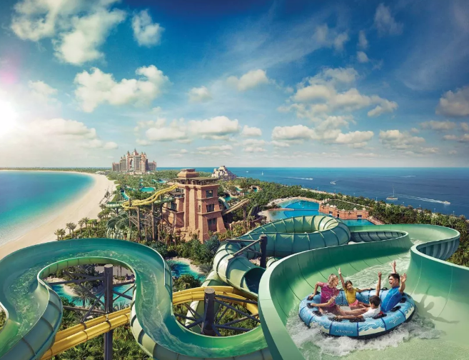 小孩子,在主题乐园撒欢。亚特兰蒂斯酒店里,占地17公顷的水世界乐园,有垂直滑道、水上过山车、海底漂流、丛林穿越、和海豚游泳……一天都玩不完!