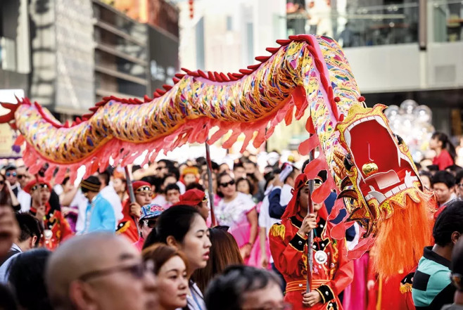 五星红旗、舞龙、舞狮、大熊猫、京剧、变脸、花车和马队巡游等,众多的中国元素隆重登陆City Walk,热闹到会让你怀疑自己出了个假国……