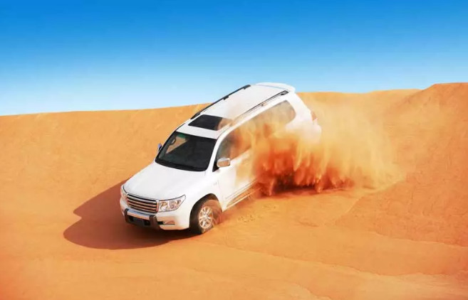 年轻人,去神奇沙漠探险。乘坐越野车,在长长的沙丘上极速前进,来一场疯狂的沙漠冒险。