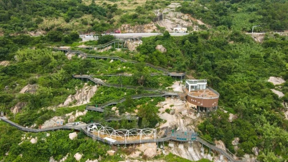 14:30到达光影栈道,这条在山海之间建立起的环海栈道,一边绿树成荫,一边则是蔚蓝的海湾,带来了对比鲜明的强烈美感。俯瞰三沙栈道,s形蜿蜒排开,蔚为壮观。