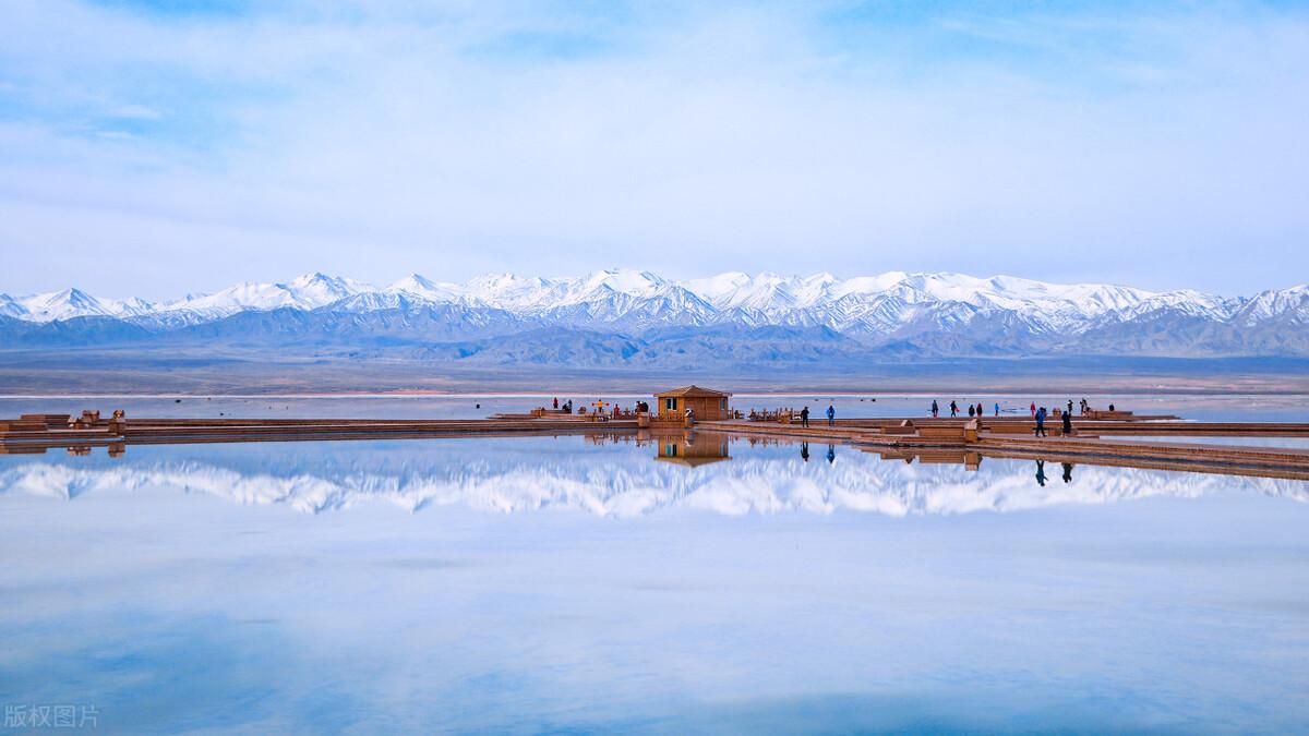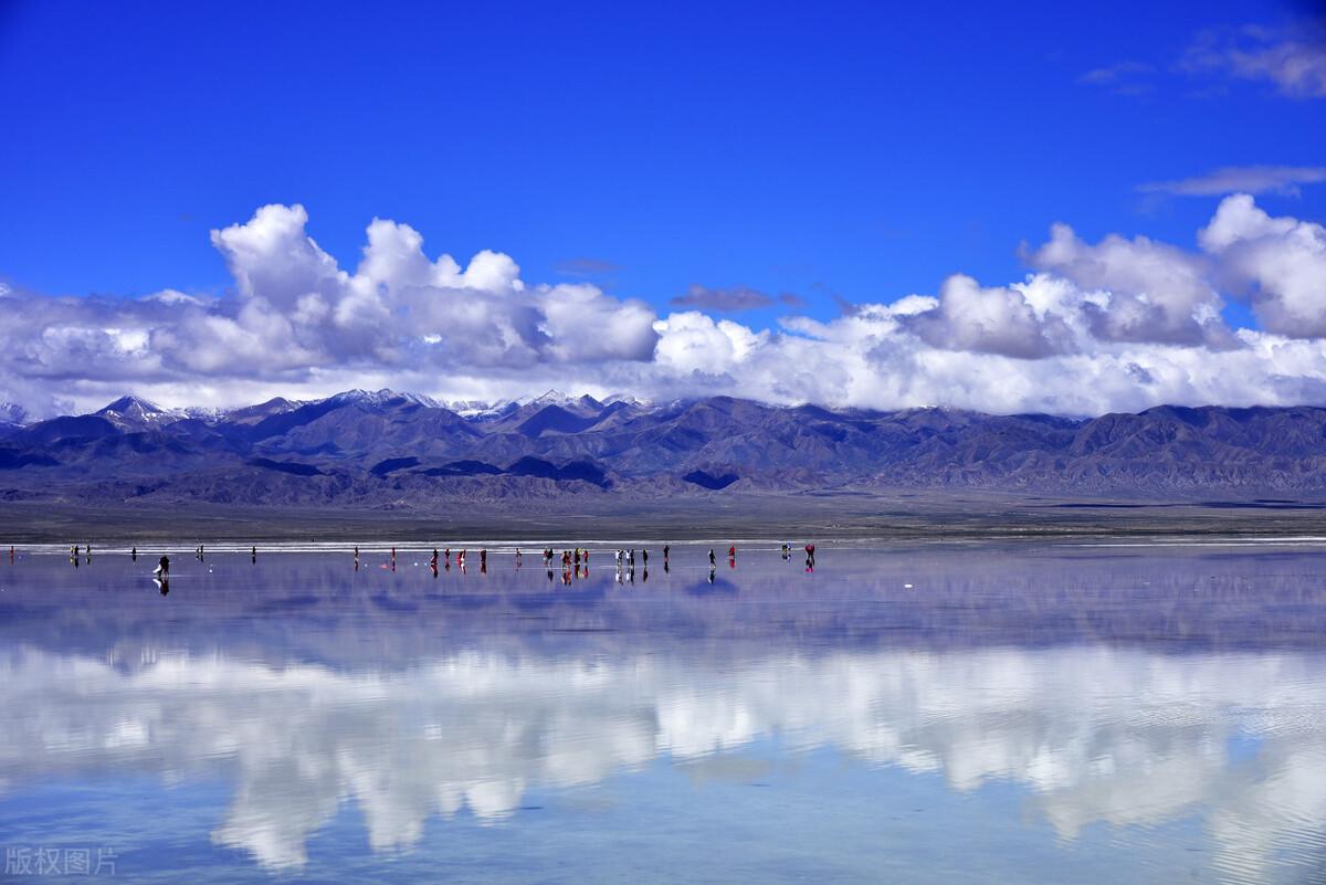 茶卡盐湖位于青海湖西侧的乌兰县茶卡镇境内,距离青海湖区域的黑马河乡约80公里,是古丝绸之路的重要站点,湖光山色风光旖旎,景色优美。茶卡盐湖是一座3000多年的盐场,湖水含盐量很大,会自然结晶成为一片白色的湖面,将天空、云朵和对岸的山都倒映在湖里非常漂亮。游客还可以赤脚走到湖面上观看和拍摄自己的倒影,好像天空之境。