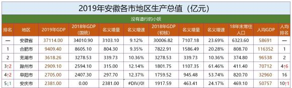 2019年滁州的GDP为2909.1亿元,排行全市第三名,距离进入三千亿元俱乐部仅仅一步之遥,2020年就可以完成,并且滁州的人均GDP也排在全省第四。虽然距离省会合肥还很远,但是已经是无可争议的安徽老三,而且还以快速的增速发展着,增速高于全省1.1个百分点,前途不可限量。