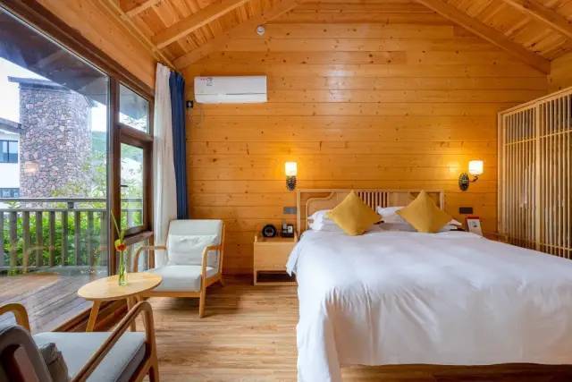 酒店拥有各式客房188间,拥有山景、家庭房、独栋别墅等不同房型,满足不同家庭出游需求。 房内装饰高雅温馨,设施齐备。此次¥699度假套餐入住的是田隐房面积约为36㎡,配有中央空调、迷你吧、高清电视、无线wifi等功能融为一体,智能科技彰显时尚设计。