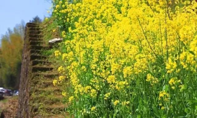 大片大片的油菜花田,微风吹过,浪涛滚滚,金黄色的花海瞬间有了灵性。