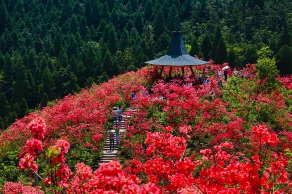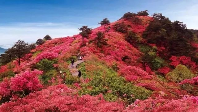 杜鹃花盛开时,像火焰染红了山谷。每年的杜鹃花节,高姥山就红遍磐安人的朋友圈。