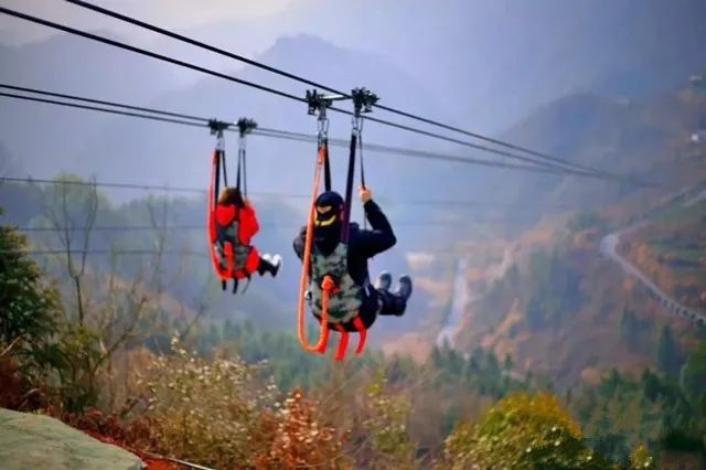 滑索坐落在景区两座海拔600米左右的玄武神龟山之间;