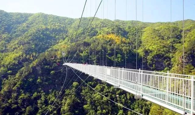 滑索旁有浙江省首座玻璃桥,气势磅礴的跌水腾龙瀑,迎客松,九龙护路等景点都一览无遗,好不惬意。