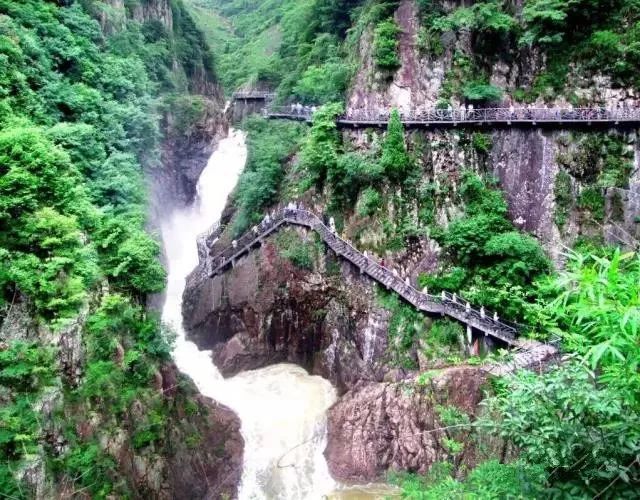 峡谷景观、独特优美,绝壁栈道、攀爬瀑布、惊险刺激。小桥、流水、人家,四周群山怀抱,山顶云雾缭绕的独特景观。