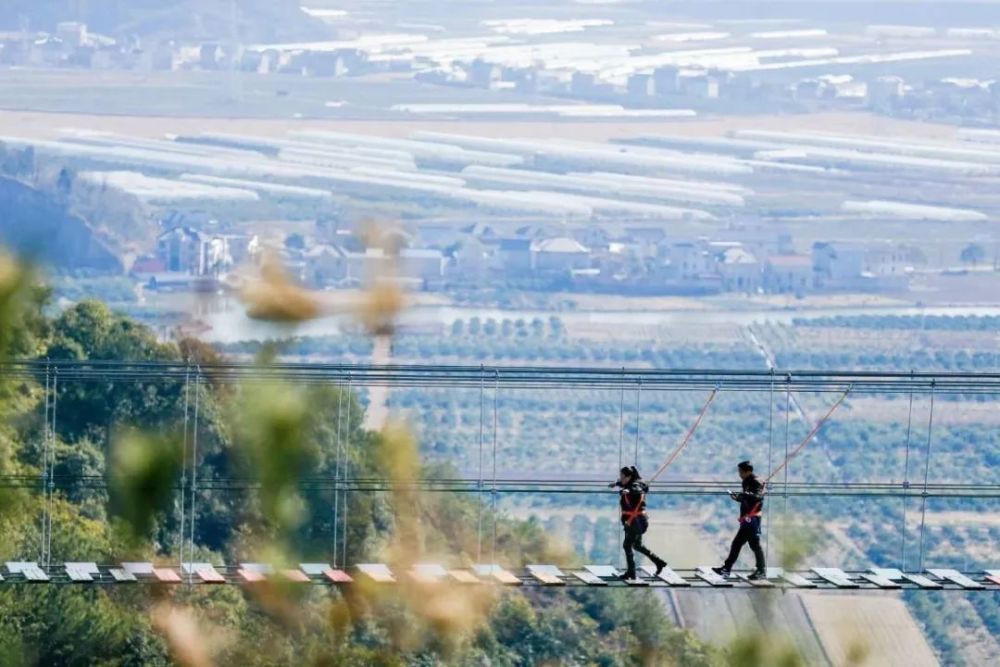 除了冰雪,宁波的山中还有不少令人忘却寒冷的新玩法。灵岩火山峰位于象山县定塘镇中坭村,这个时节,漫山青黄相接色,远眺是错落有致的田埂连连,漫步游步道,体验火山风情,挑战山谷中的悬空索桥,绝对让人肾上腺素飙升。