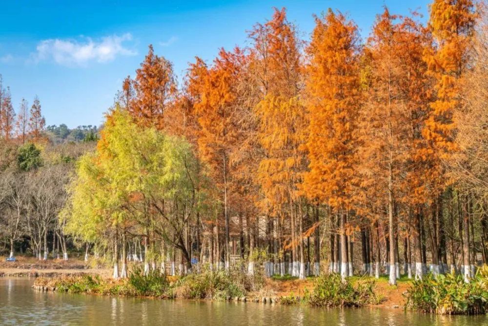 相比东钱湖的浩渺,位于宁波城北的慈湖则更有种小家碧玉的婉约。慈湖边上的一片水杉林不顾冷空气的阻拦,红得震撼,黄得热烈,绿得蓬勃,印在原本青翠的湖面,也换上了斑斓的色彩,美得令人流连。每到新年,紧挨着慈湖的慈城古县城,会被各色花灯照亮。成串的红色灯笼,应景的兔子灯笼,丰富的国潮元素,让新年的气氛流光溢彩。