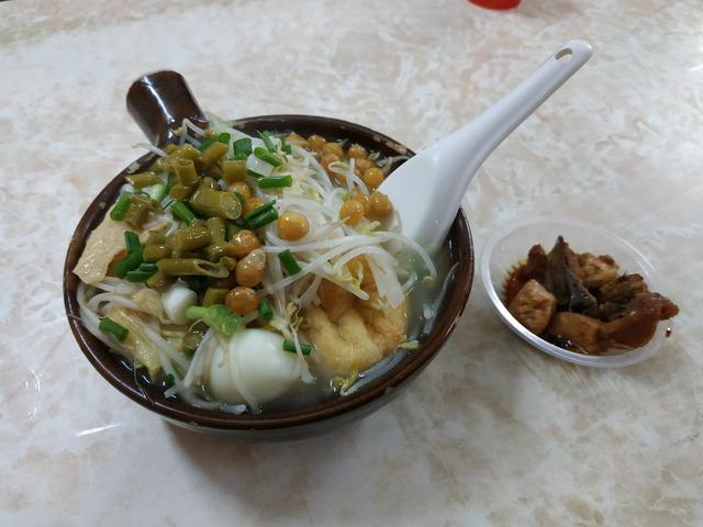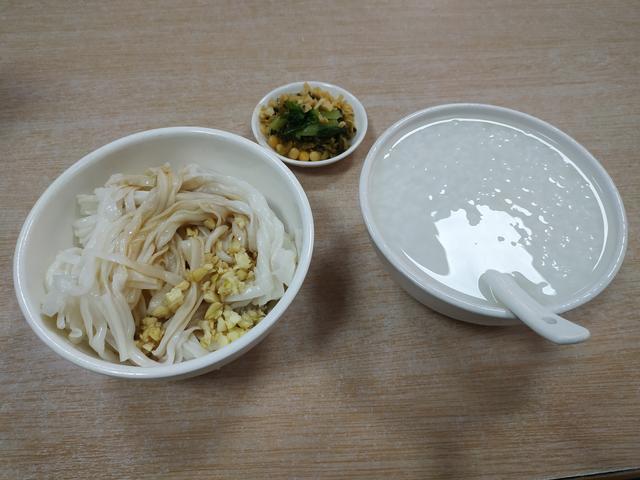 白粥捞粉茂名早餐经典黄金搭档,其实和你常见的没什么区别,就是普通的白粥加上一小碟小菜,但它确实是大部分茂名人每天最喜欢吃的早餐之一,特别是这里的捞粉,做法简单粗暴,便宜又入味。