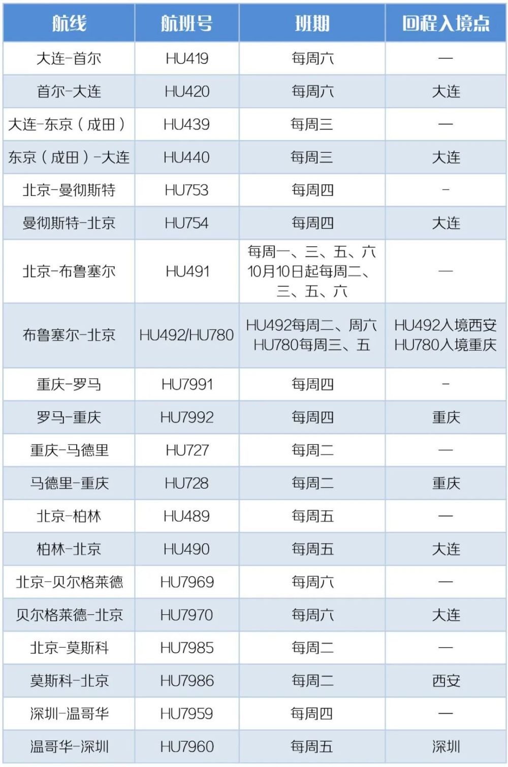 海南航空方面称,换季后,海南航空将继续运营北京—布鲁塞尔、北京—莫斯科、北京—贝尔格莱德、北京—柏林、北京—曼彻斯特、重庆—罗马、重庆—马德里、深圳—温哥华、大连—东京、大连—首尔共 10 条往返国际客运航线。同时,增频重庆—罗马国际航班至每周两班, 2022 年冬春季海南航空将继续加快国际航班的复航工作,以进一步满足出入境需求。