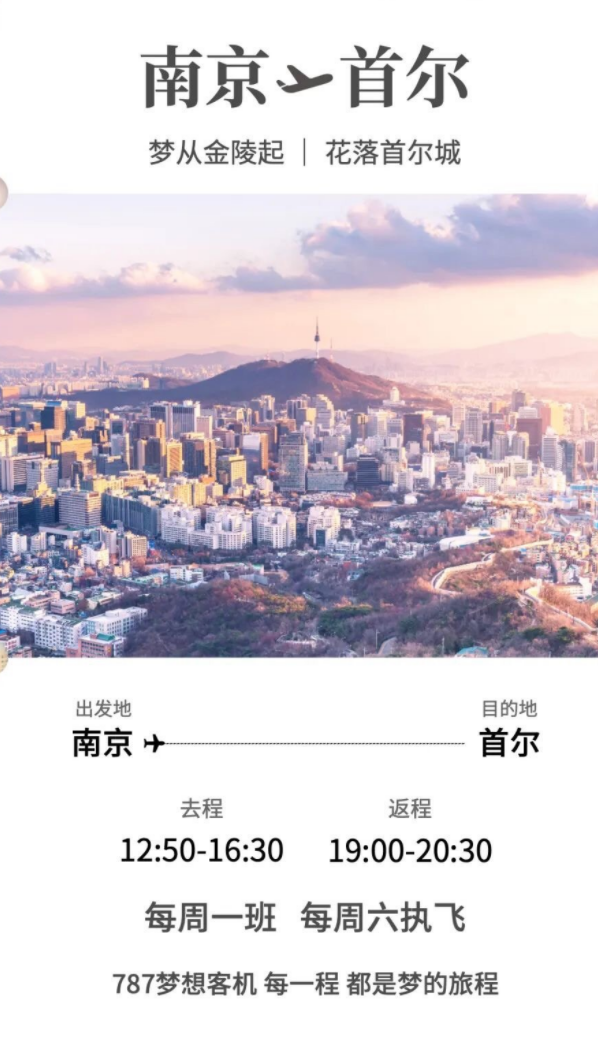 吉祥航空也于 10 月新开及恢复部分国际航线。据近日吉祥航空官方微博消息, 10 月 8 日起执飞南京-首尔航线,每周一班,周六执飞。10 月 16 日起南京-大阪往返航线恢复,每周一班,周日执飞。