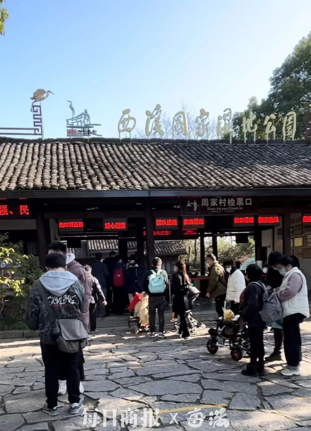 从2023年1月1日至3月31日,西溪湿地也实行免门票政策。1月7日-8日,西溪湿地迎来了免门票后的第一个双休日。今天上午10点,西溪湿地周家村入口人头涌动,游客们络绎不绝,在检票口排起来队伍。