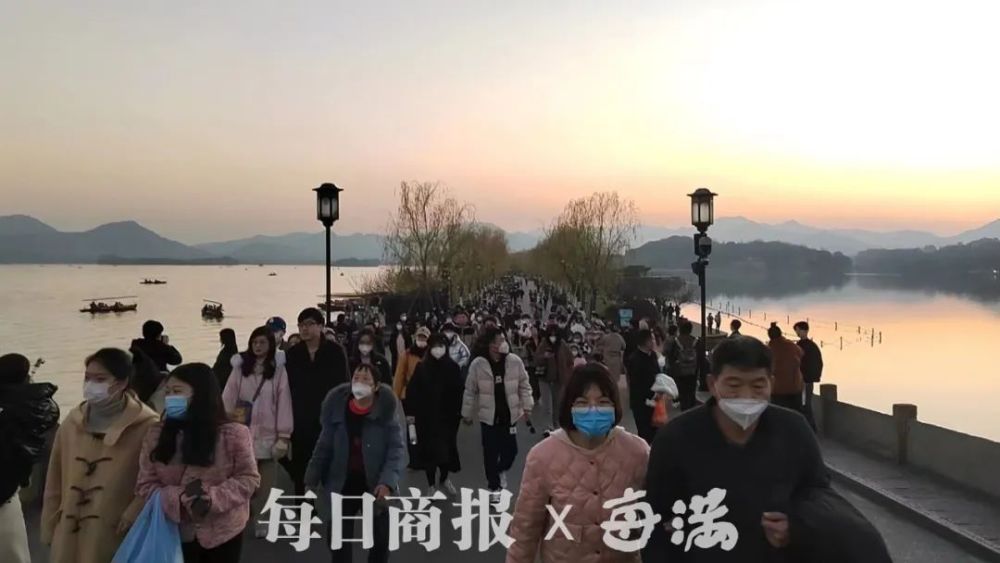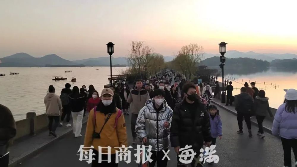 游客张先生告诉记者,自己是外地来杭州旅游的,感受到了西湖暖冬的魅力,夕阳西下,真的太美了。“也是因为疫情放开了,现在路上都听不到人咳嗽,感觉还是安全的,不过人真的是多啊。“