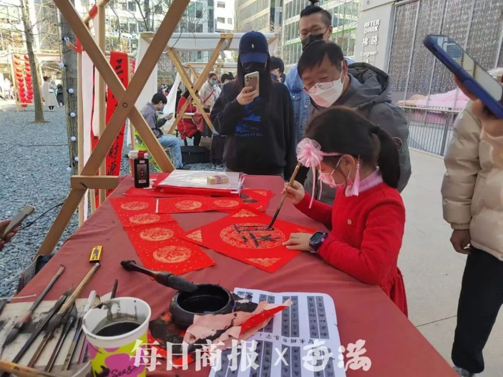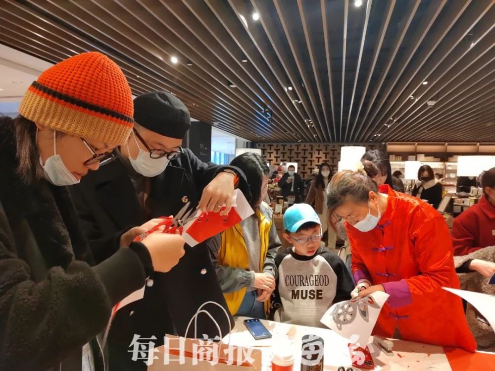 负一楼的剪纸处,剪纸老师爱丽丝正在教一个小朋友剪窗花,她告诉记者,剪纸是指尖的艺术,要把剪纸这项中国这项传统文化传承下去。“来这边体验一下最早的新春氛围,感觉真的收获满满。”小朋友的妈妈说。