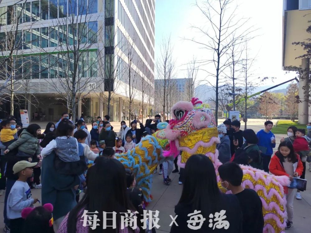 “舞狮这门中国传统绝学也快渐渐消亡,但在天目里看到真的还蛮惊喜的。之前看电影《雄狮少年》看得我激情澎湃,狮子就代表了中国人不服输的精神。”张先生一直在追着舞狮的队伍,在密密匝匝的人流里观看精彩的舞狮表演。只见舞狮的人一会儿跳上,一会儿跳下,摇头晃脑,把狮子的威风展现得淋漓尽致。