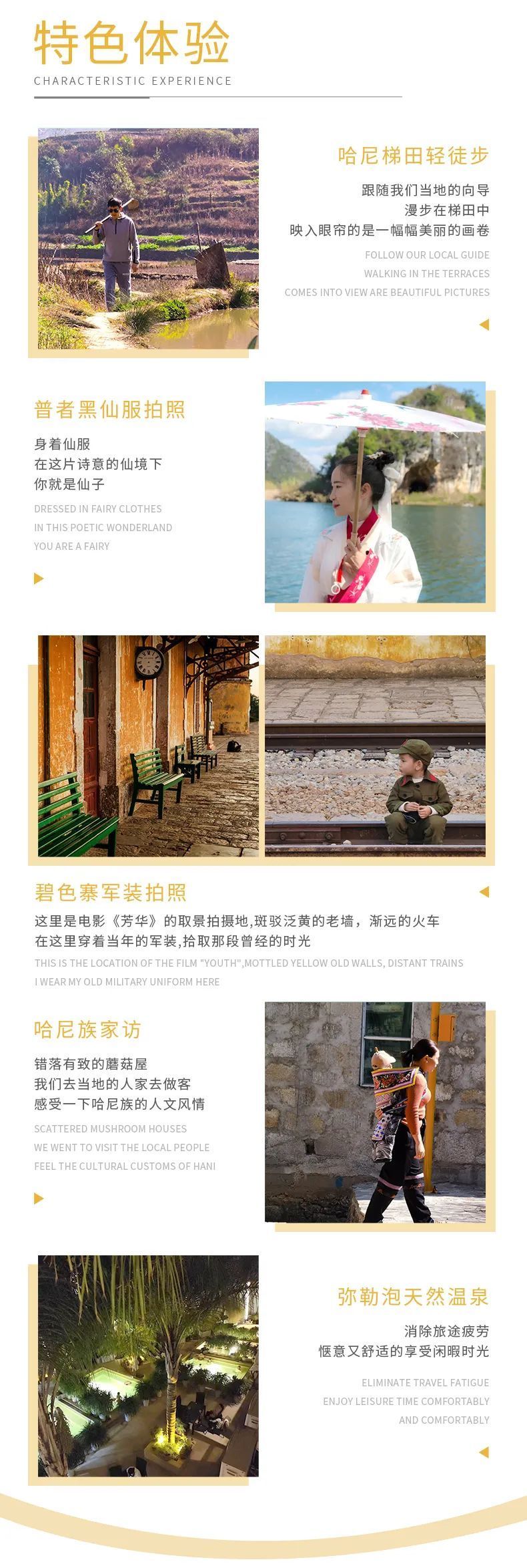 2.赠送蒙自军装体验、普者黑仙服体验;