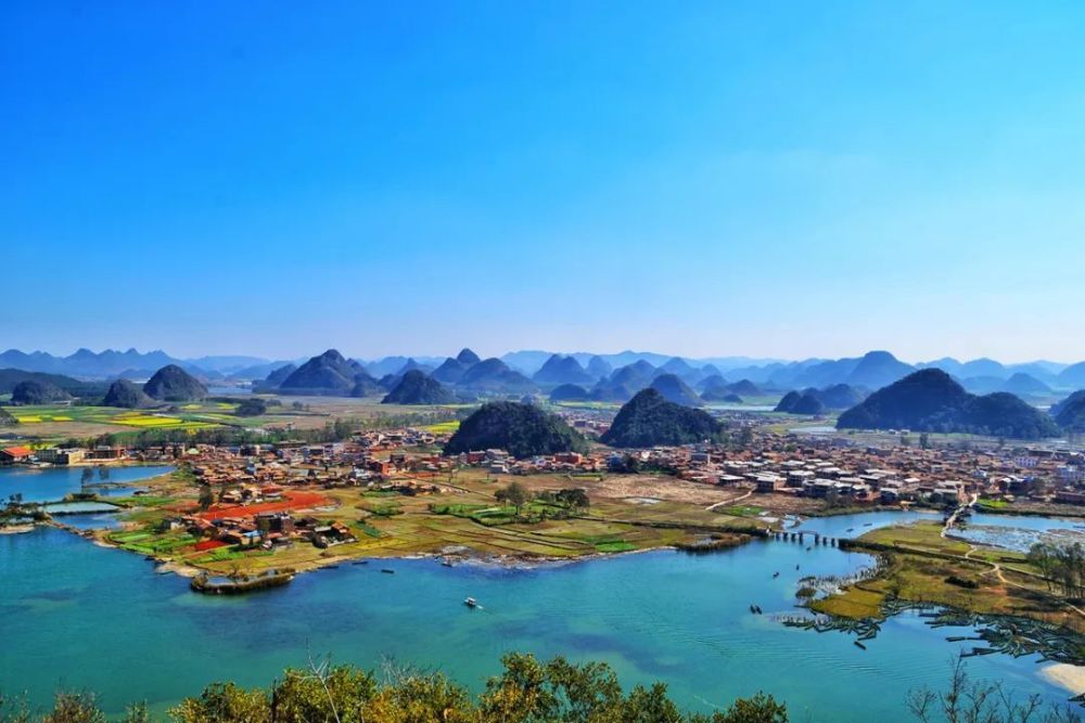 彝语为“鱼虾多的池塘”,位于文山州丘北县,是一个由80个湖泊、喀斯特峰林、溶洞、少数民族村落组成的景区。虽然不如洱海滇池般大气磅礴,但80个迷宫般的海子、200多座喀斯特小山峰、村舍、农田和草场散发出的小家碧玉气质更让人迷醉。另外,这里还是花腰彝和全国仅存的僰人后裔聚居地,民族风情浓厚。