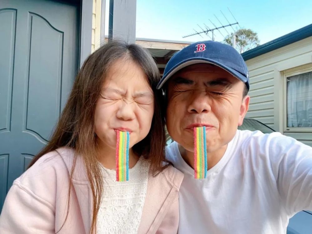 ▲ 大马猫本和10岁的闺女一起做鬼脸。
