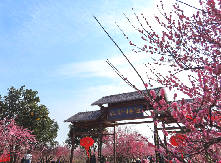 恒荣梅园占地650亩,园内种植了染井吉野樱465株,樱花盛开时,娇艳欲滴,美不胜收;园内还种植了古梅763株,其他梅花23000余株,另有海棠、紫荆、碧桃、中华木绣球、映山红等各种苗木173个品种,共计59770株,风景秀丽,四季有花可赏,被誉为荆州的后花园,获评2022年湖北赏花“网红打卡地”。