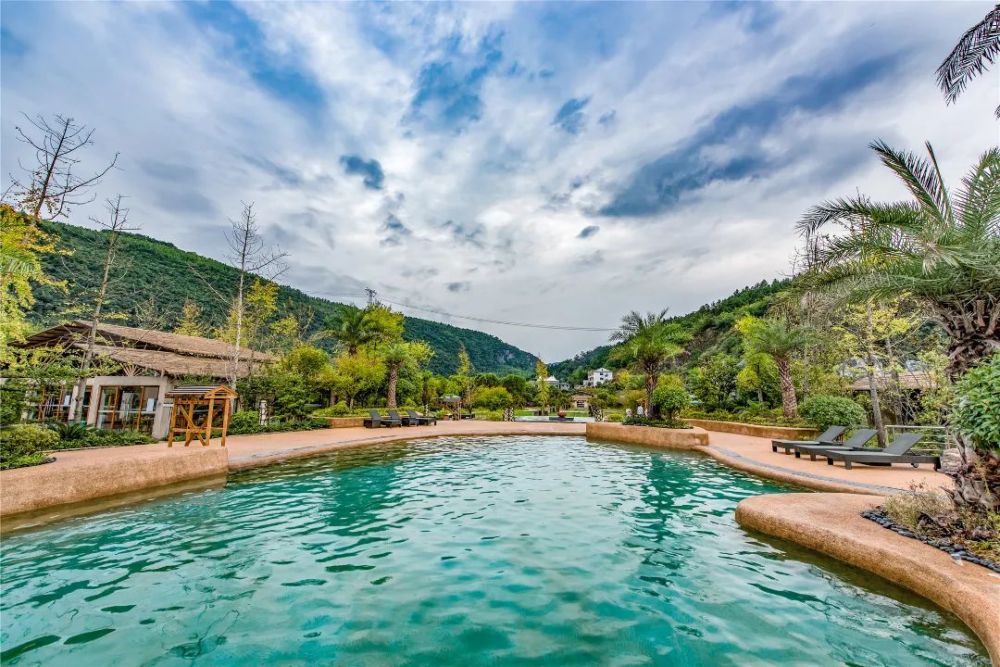 曲尺河温泉度假邨坐落在湖北省松滋市卸甲坪土家族乡,位于松滋西南边陲、湘鄂两省四县市结合部,神秘的北纬30度线上。这里山岭遍布、川谷崎岖,因民风淳朴,美景众多,居民普遍长寿,故得“世外桃源”“长寿之乡”美誉。