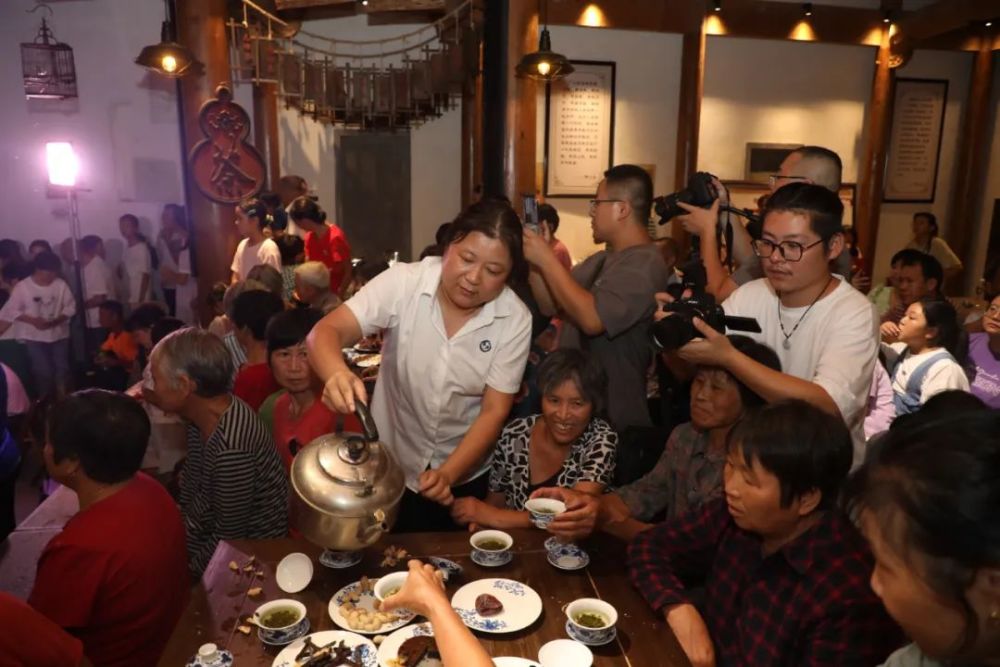 婺源汪口老茶馆的中秋茶话会颇具特色,吸引了各地嘉宾和村民们。现场载歌载舞,游客村民共品佳茗、共叙佳话……共同见证了“天涯共此时”的美好。