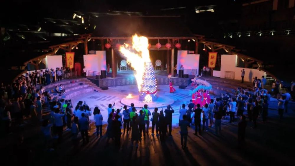 中秋烧宝塔是上饶流传已久的习俗,每年中秋之夜,人们都会烧起火旺的宝塔,祈愿来年的生活更加红红火火。在铅山县葛仙村,这座砖块垒砌的宝塔有4米多高,上尖下圆,塔身四面有孔,孔孔相通。经过请接火种、敬酒、喝彩圈塔和添财(柴)等流程,吸引全场村民和游客关注的聚火点塔就开始了。