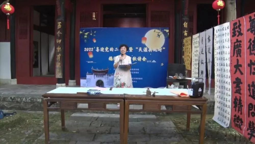 “天涯共此时”鹅湖书院中秋诗会活动现场,诗词爱好者们现场创作诗词,书法爱好者也泼墨挥毫,讴歌祖国的新变化新成就,展现新时代人民昂扬向上的精神风貌和富有地域色彩的风土人情。