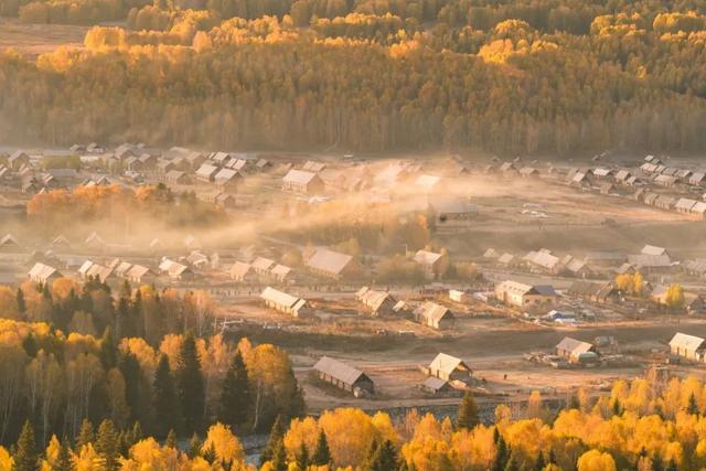 每逢秋至,炊烟在漫山遍野的金黄中冉冉升起,形成一条梦幻的烟雾带,宛若世外桃源。