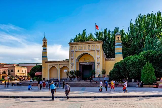 喀什有两座城,一座是老城,一座是新城。老城的主要街道几乎都通向艾提尕尔清真寺,星期五早晨,人们能听到寺中的买增站在宣礼塔上,召唤教徒做礼拜的声音在黎明的空气中震颤,飘过原野。