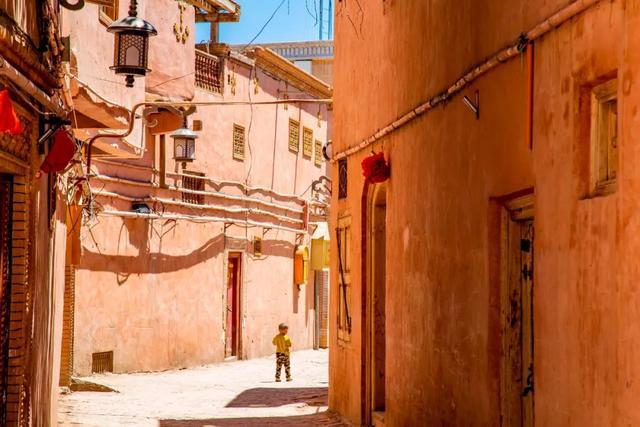 这里的民居融合了汉唐、古罗马遗风和维吾尔民族现代建筑的特点。是世界上规模最大的生土建筑群之一,也是中国唯一的以伊斯兰文化为特色的迷宫式城市街区。