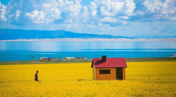 青海大地上如“蓝宝石”般澄澈耀眼的高原湖泊,是青海的一张亮丽名片。7月,环湖的油菜花竞相开放,湖水湛蓝,绵亘数十里的峰峦已经换上绿装,展现着青海生态之美。