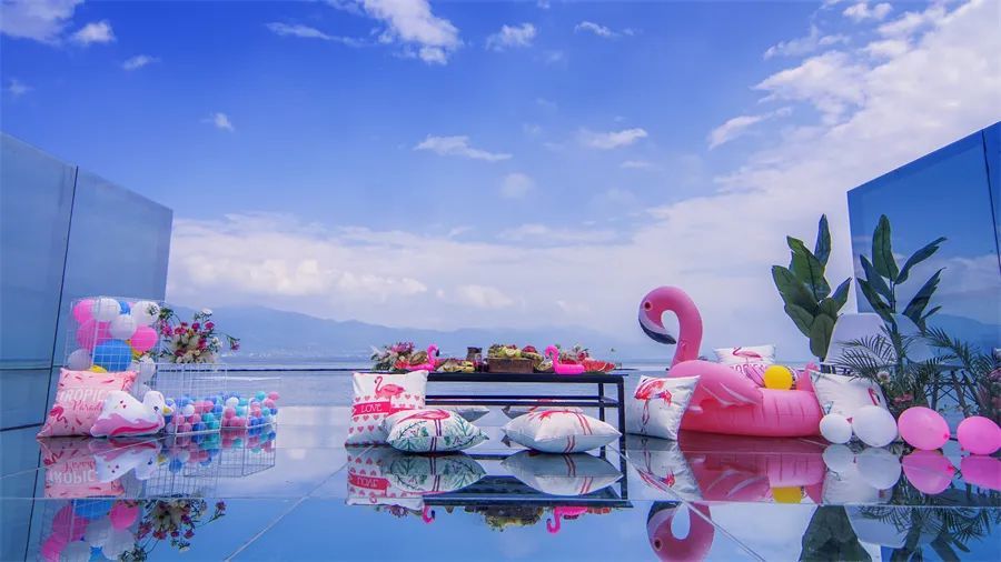敞篷吉普车:感受被誉为最美环海路,心花路放,海天一线。大理的天空蓝得清澈又明丽,朵朵飘移的白云就像一团团棉花糖,在晴朗的天空下,把蓝天和白云揽入怀里,美不胜收。邂逅洱海最美的—抖音网红打卡点:海景、网红道具—网红玻璃球、白色桌椅,倾心为您定制洱海梦!在敞篷吉普车上放飞青春,拍出不一样的自己!