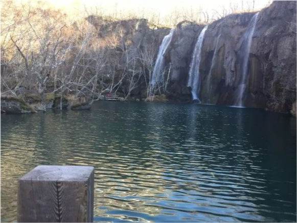 从温泉广场向前步行大约十几分钟,到达瀑布,远观,不是很大!