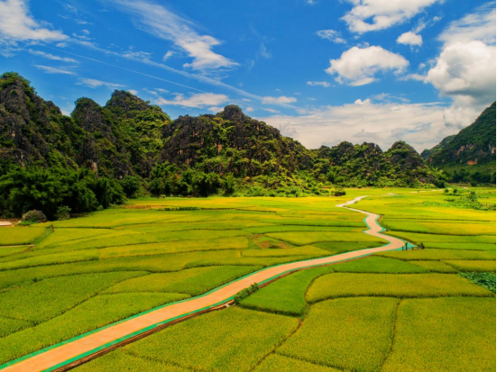 苹塘镇的“中国美丽田园”,属喀斯特地貌,有独特的盆地性气候,稻田多处于峰林山水之间,田园风光四季展现不同美态。早春二月,在阳光照耀下,田园线条如织,耕作的人点缀田间,仿如国画;丰收时节,田园里金稻飘香,稻浪千重,白鹭飞越,人们登高眺望或者摄影,流连忘返;冬天,苹塘的田园依然保留着“春”的气息,繁花似锦,风光旖旎。苹塘美丽田园被中国农业部评为"中国美丽田园"。