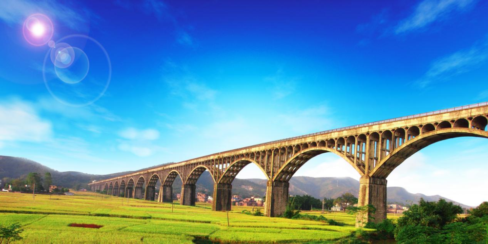 长岗坡渡槽,全国重点文物保护单位,广东省首批红色革命遗址重点建设示范点,位于云浮罗定市罗平镇,是“引太灌金”水利工程的主要关键大型建筑物。渡槽1976年始建,1981年建成通水。文物本体包括长岗坡渡槽、牛路迳至平洞引渠和花鹿坑渠段三部分。渡槽南北走向,引泷江上游罗镜、太平两条河河水,入金银河水库,全长5200米,包括平洞砌石拱渡槽3450米,砌石渠渡槽1750米。渡槽为连拱结构,有槽墩133个,跨拱132个,跨拱最高为37米,最大跨度51米。渡槽宽6米,深2.2米,流量可达25立方米/秒。长岗坡渡槽是中华人民共和国成立后南方最大的引水渡槽工程,也是当时世界上最长的引水渡槽之一,已成为我国社会主义集体化时期农业水利工程的杰出范例,以及见证我国水利工程发展历程的重要实例,被誉为“南国红旗渠”。