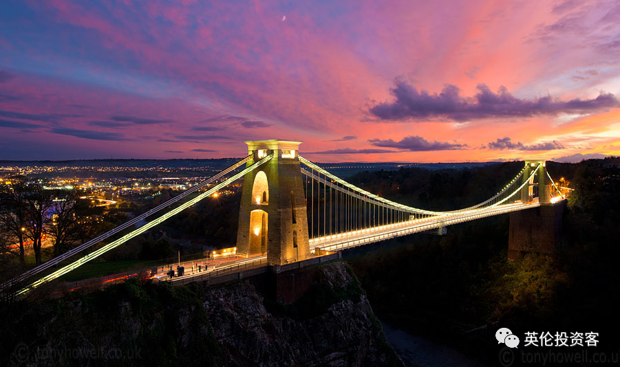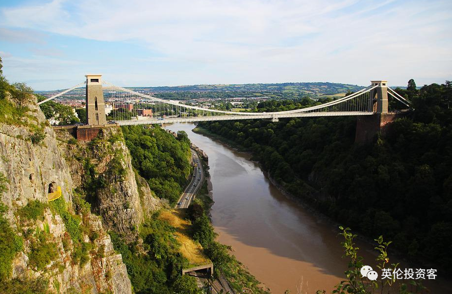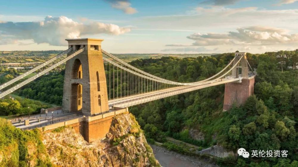 克利夫顿吊桥是英国的标志性工程建筑,俯瞰布里斯托市区。