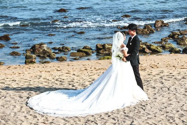 这里融碧水、蓝天于一色、烟波浩瀚,帆影点点、椰林婆娑、奇石林立、如诗如画。这里,自然清新、广阔水景、野外地域空旷,拍摄出来的婚纱照更显大气背景,或热烈或苍凉都容易出效果。